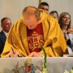 W okolicznościowej homilii biskup świdnicki najpierw przedstawił biografię ks. Krzysztofa Herbuta. Kapłan pochodzi z miejscowości Uniejowice koło Złotoryi,  gdzie urodził się w 1965 r. Święcenia prezbiteratu przyjął w 1991 r. z rąk ks. kardynała Henryka Gulbinowicza w katedrze wrocławskiej. Najpierw był wikariuszem kolejno w Żarowie, Legnicy i Strzegomiu. Przez ostatnich 12 lat był proboszczem parafii pw. Św. Jana Nepomucena w Piskorzowie koło Bielawy. Jest jednocześnie diecezjalnym duszpasterzem grup Odnowy w Duchu Świętym. Jak już pisaliśmy w naszym portalu, zastąpił ks. Mariana Mądrego, który po 19 latach zrezygnował z funkcji proboszcza oraz dziekana dekanatu Ząbkowice Śląskie Północ i przeszedł na emeryturę. W dalszej części homilii wierni usłyszeli objaśnienie norm prawa kanonicznego regulujących obowiązki proboszcza oraz powinności członków wspólnoty parafialnej. Istotą tych wskazań jest wzajemna pomoc i wspólna troska o ducha chrześcijańskiego w modlitwie i świadectwie życia. Nawiązując do perykopy ewangelicznej czytanej podczas Liturgii Słowa, w której można było usłyszeć zdanie „Szczęśliwe oczy, które widzą to, co wy widzicie”, ks. biskup Ignacy Dec życzył zarówno nowemu ząbkowickiemu duszpasterzowi, jak i parafianom, aby owocnie korzystali z danych im charyzmatów dla dobra Kościoła, a szczególnie parafii i jej mieszkańców. Po homilii ks. Krzysztof Herbut złożył wyznanie wiary oraz przyrzeczenia związane z posługą i odpowiedzialnością proboszcza parafii pw. Św. Anny w Ząbkowicach Śląskich. Podpisał też wraz z ks. biskupem stosowne dokumenty i tym samym objął urząd proboszcza.