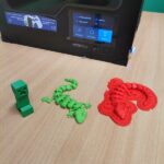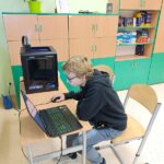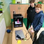 Coraz większym zainteresowaniem cieszy się drukarka 3D, która niczym „magiczny ołówek”, wyczarowywała nam cudne napisy świąteczne, wykorzystane później do ozdobienia stroików bożonarodzeniowych. Chcąc wydrukować postacie dinozaurów, jaszczurek i innych figur uczniowie najpierw, musieli wyszukać odpowiedni projekt, a następnie dostosować parametry wydruku w programie Z-Suite. Ponadto uczą się jak samodzielnie wymienić filament i dokonują ostatecznych poprawek powstałych form. Z uwagi na duże zainteresowanie możliwościami druku 3D rośnie nam długa kolejka oczekujących na wykonanie projektów, bowiem wydruk niektórych trwa kilkanaście i więcej godzin.