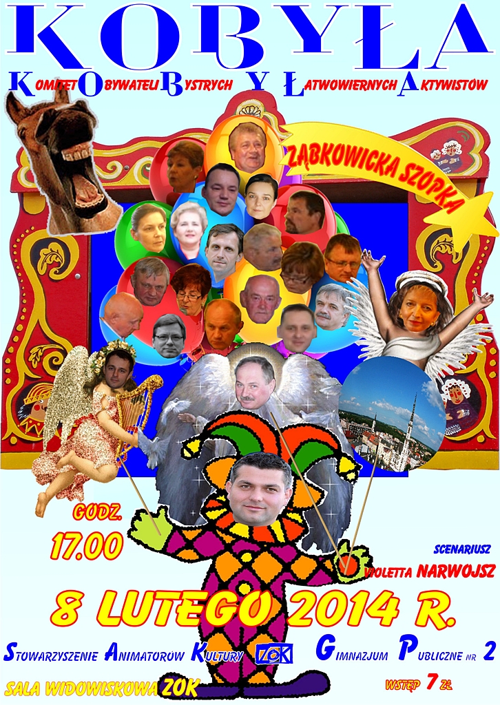 „Kobyła, czyli Komitet Obywateli Bystrych Y Łatwowiernych Aktywistów”. Sympatycznie brzmiący skrót to tytuł ząbkowickiej szopki noworocznej, której twórcy zdecydowali się ...