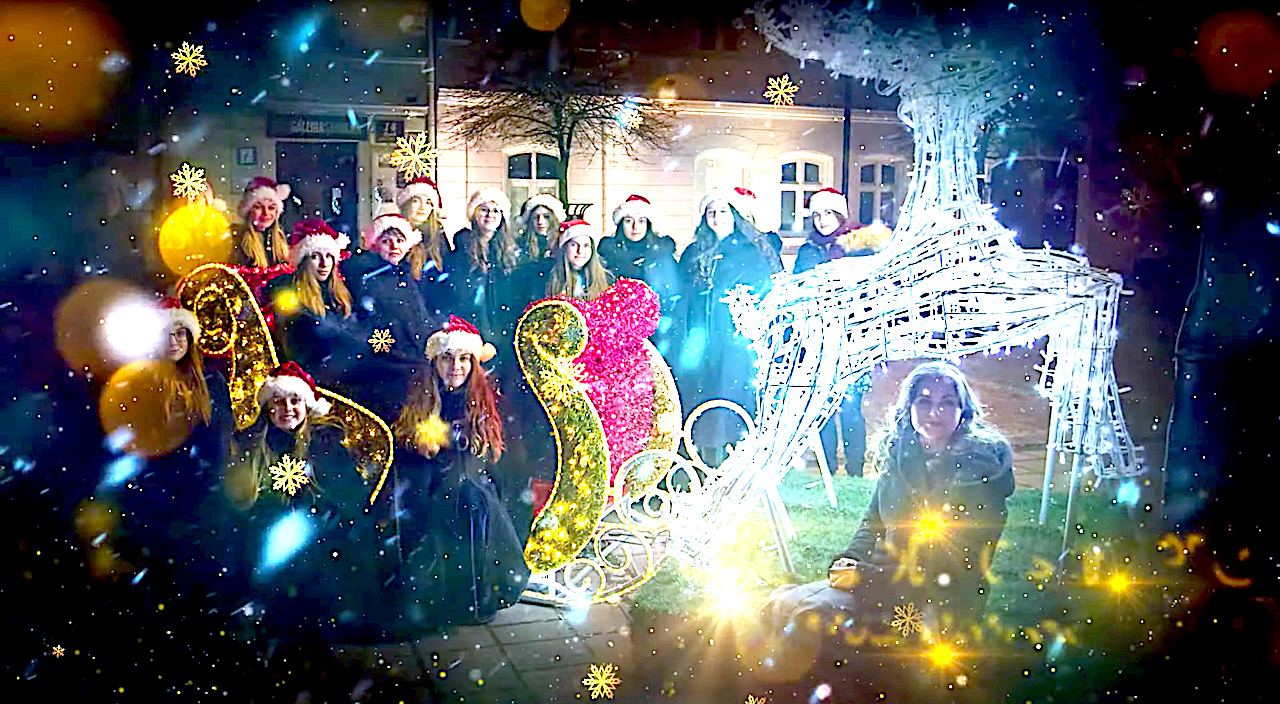 Mroźna cisza świat okryła i na ziemię noc spłynęła, tylko gwiazda świeci. W ciemnej szopie Maria miła tuli do snu ...