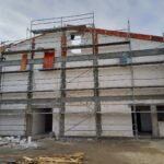Relacjonowana w naszym portalu inwestycja jest już na etapie, w którym przygotowano konstrukcję budynku pod montaż dachu nad halą główną. Rozpoczęto również izolację termiczną ścian i montaż zbiornika do celów przeciwpożarowych. Cały obiekt będzie miał wymiary 32,54 x 19,04 m i wysokość 6,54 m, a powierzchnia zabudowy sali gimnastycznej wraz z zapleczem i łącznikiem to ponad 1022 mkw. Powierzchnia użytkowa hali wyniesie ponad 912 mkw. Płyta sali gimnastycznej ułożona będzie z certyfikowanej nawierzchni sportowej montowanej na wentylowanej mechanicznie przestrzeni podpodłogowej. Budynek ogrzewany będzie powietrzną pompą ciepła wspomaganą instalacją fotowoltaiczną. Ekologiczne ogrzewanie bezemisyjne, w tym podgrzewanie ciepłej wody ma niebagatelne znaczenie, gdyż kubatura całego budowanego obiektu wyniesie niemal 8059 msz.