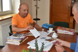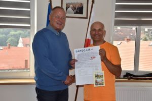 Tomasz Pawłowski znany większości urzędników w Polsce jako „Tomek Wędrowniczek” 4 września br. odwiedził Urząd Miasta i Gminy w Bardzie. Pan Tomek jeździ po kraju odwiedzając kolejne urzędy. W Bardzie spotkał się z burmistrzem Miasta i Gminy Bardo Krzysztofem Żegańskim oraz zastępcą Krystyną Sobieraj.