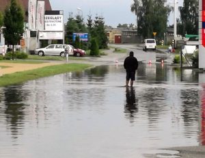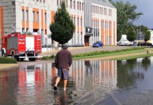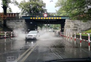 11 lipca w godzinach popołudniowych obfite opady deszczu przeszły również nad Ziębicami. Ponownie zalana została ulica Chrobrego i pobliskie posesje. Mieszkańcy pytają: Jak długo jeszcze będziemy czekać na jakąś reakcję ze strony gminy lub starostwa? Problem z zalewaną przez wodę ulicą Chrobrego jest znany od lat. Znajdująca się tam kanalizacja burzowa nie jest w stanie odprowadzać wszystkich wód, które finalnie zlewają się w okolicy torów kolejowych. Mieszkańcy wielokrotnie zgłaszali problem władzom gminy, o pomoc byli prosić także w starostwie. Jak twierdzą, bezskutecznie. Efektów w postaci prac na drodze wciąż nie ma, choć Powiat Ząbkowicki otrzymał niedawno 1.5 mln zł dofinansowania z MSWiA na przebudowę drogi wraz z kanalizacją burzową. Realizację zadania uniemożliwia jednak brak dokumentacji na przebudowę trasy. Wicestarosta Mariusz Szpilarewicz na majowej sesji rady powiatu zadeklarował, że ze strony Powiatu Ząbkowickiego zostanie zrobione wszystko, aby do końca 2018 roku przygotować niezbędne projekty do realizacji zadania, a w 2019 roku przeprowadzić kompleksowy remont drogi wraz z odprowadzaniem wód, częściowo także w kierunku ul. Gazowej. Rozpoczęcie remontu ul. Chrobrego w Ziębicach przedłuża się. W tym roku tylko dokumentacja? Mieszkańcom pozostaje więc uzbroić się w cierpliwość i mieć nadzieję, że wspólne plany władz gminy i powiatu w kwestii rozwiązania problemu uda się ziścić. Obfite opady deszczu przeszły wczoraj również przez Ząbkowice Śląskie. Tam wystarczyła niespełna godzina, aby pod wiaduktem na ul. Wrocławskiej znów zgromadziła się spora ilość wody. Zalana została też m.in. ul. Świerkowa i parking na osiedlu Słonecznym.