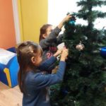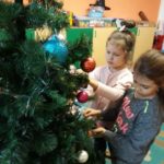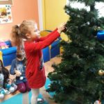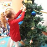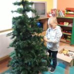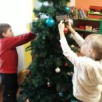 Tradycja ubierania choinki jest znana chyba wszystkim – naszym przedszkolakom również. W związku z tym, z okazji zbliżających się świąt Bożego Narodzenia nasza najstarsza grupa „Tygryski” postanowiła wspólnie ubierać choinkę, aby wprowadzić świąteczny nastrój do sali przedszkolnej. Pani Ala przystroiła drzewko w kolorowe lampki, a każde dziecko zawiesiło na choince wybraną przez siebie bombkę.