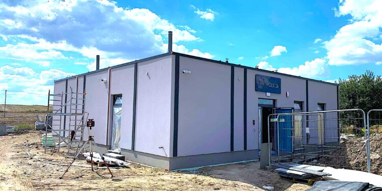 Budowa rozpoczęła się w nocy z 2 na 3 sierpnia 2022 roku i konstrukcja modułowa stoi już na swoim wcześniej przygotowanym miejscu. Dzisiaj w toku są prace wewnątrz powstającej w szybkim trybie posterunku Policji w Marcinowicach.