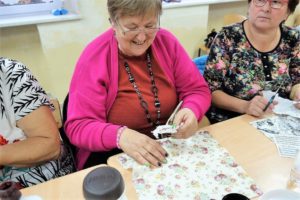 Jego organizatorki – Janina Lacel i Agnieszka Rzepka – z Fundacji „Teraz Ziębice” zaplanowały pięć warsztatów rękodzielniczych – bezpłatnych i łatwo dostępnych nawet dla mieszkańców wsi, ponieważ każde ze spotkań miało odbyć się w innej miejscowości w różnych częściach gminy Ziębice. Pierwsze warsztaty odbyły się 12 października w Witostowicach, gdzie pod okiem Jadwigi Wiewióry, wszechstronnie utalentowanej rękodzielniczki, osoby w różnym wieku i o różnej sprawności wykonywały ozdoby z papieru. Kolejne rękodzieła powstawały 15 października w Osinie Wielkiej, gdzie Sylwia Skowroń, na co dzień pracownik ziębickiego Muzeum, a po godzinach pasjonatka decoupage’u, pokazywała jak tą techniką wykonać efektowne przedmioty, które ozdobią mieszkania lub staną się prezentami dla bliskich. Jak używać szydełka? Dobrze na tym się zna Barbara Trika, która 24 października w Lubnowie najpierw pokazała, co można wyczarować przy pomocy takiego metalowego „patyczka” z haczykiem, a następnie pokazała jak się z nim zaprzyjaźnić. Nie jest łatwo… Listopadowe warsztaty (7 i 14 listopada) przeprowadziła rewelacyjna Małgorzata Staroń. To artystka przez wielkie „A”. Najpierw – w Czerńczycach – pokazała jak wykonać wianki – z uwagi na porę roku – bożonarodzeniowe. Potem – w Ziębicach – również w świątecznym klimacie powstawały bombki choinkowe. – W warsztatach wzięło udział łącznie 111 uczestników – podsumowuje projekt Janina Lacel, prezes Fundacji „Teraz Ziębice”. – Zajęcia były bezpłatne, a ponadto zapewniliśmy uczestnikom wszystkie narzędzia i materiały, a nawet poczęstunek. Wszystkie rękodzieła, które powstały w ramach tego projektu ich twórcy zabrali do domów – mówi. Warsztaty jednak to nie wszystko, co Fundacja „Teraz Ziębice” zaproponowała mieszkańcom. Każde zajęcia uświetniał występ zespołu Malwy, który działa przy Ziębickim Centrum Kultury. Było więc wspólne śpiewanie, a nawet tańce… Warto podkreślić, że utalentowanych rękodzielników na Ziemi Ziębickiej jest naprawdę wielu. Pokazuje to publikacja wydana również w ramach projektu „EtnoZiębice…”.