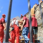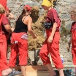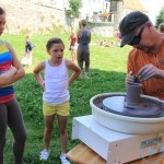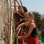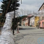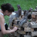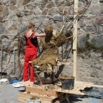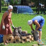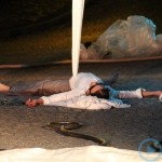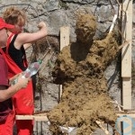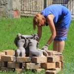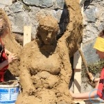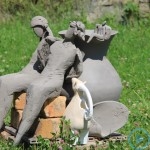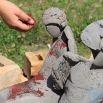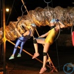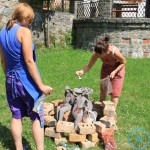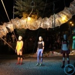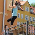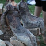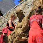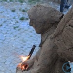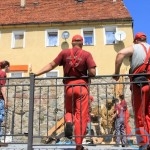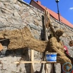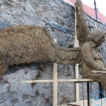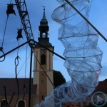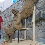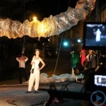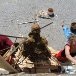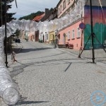 Warsztaty i happeningi, koncert, popisy taneczne, widowisko plenerowe oraz kamienne instalacje – tak można w telegraficznym skrócie opisać zapowiadaną przez nasz portal serię przekazów artystycznych. Pierwszego dnia, czyli w sobotę 9 sierpnia – członkowie skupiającej miłośników rzeźby poznańskiej formacji „Brygada Pigmaliona” wykonywali wielkich rozmiarów glinianą rzeźbę. Wielu przechodniów początkowo sądziło, że to będzie monumentalny anioł, ale po pewnym czasie okazało się, że widzimy sylwetkę „uskrzydlonej starej kobiety”. Po kolejnym etapie tworzenia glinianej figury, dla utrzymania której prawie non stop potrzebne było jej zraszanie, ujrzeć można było w dłoniach siedzącej i zamyślonej niewiasty …karabin. Po zmroku owa broń dosłownie paliła się. Niestety następnego poranka „babcia ze skrzydłami i karabinem” zniknęła. Taka jest bowiem idea poznańskich artystów, iż tworzą dzieła tylko na kilka chwil, nawet jeśli samo utworzenie rzeźby zajmuje im cały dzień. A propos wspomnianego już palenia – ogień i żar wypełniał wybudowany na oczach publiczności specjalny piec. W temperaturze ok. tysiąca stopni w skali Celsjusza wypalały się w nim dwie nieduże figurki aniołów. Wcześniej zostały one posypane sproszkowanymi barwnikami, a ostateczny rezultat można było podziwiać dopiero następnego dnia wieczorem. Sobotni wieczór to także energetyczne akustyczne granie w wykonaniu kapeli Mirna Ray. Założony w Londynie duet Marcina i Bartka Dzierbunów grał muzykę kompilującą trans i melancholię. Było bardzo głośno i niesamowicie emocjonalnie. Do tego stopnia, że do gry włączali się obecni w „Aniołku” entuzjaści takiego muzykowania. Późnym wieczorem i nie bez problemów technicznych odbył się – zapowiadany przez nasz portal – happening uliczny pod tytułem „Under Construction”. Stosując środki wyrazu charakterystyczne dla sztuk cyrkowych i teksty Tadeusza Różewicza, aktorki pod kierunkiem Katarzyny Donner zamieniły rynek Srebrnej Góry w przestrzeń eksploracji po naszych wyobrażeniach o doskonałej przyszłości. Wspomniane już perturbacje sprzętowe sprawiły, że widowisko trzeba było zaczynać dwa razy, ale najwytrwalsi widzowie, nagrodzili je brawami.
