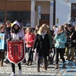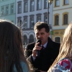 Liderkami zespołu, który postanowił propagować wiedzę o zagrożeniach i profilaktyce groźnej choroby nowotoworowej w ramach ogólnopolskiej akcji „Mam haka na raka”, są: Daria Józwiszyn, Edyta Józwiszyn i Eliza Józwiszyn, a wspomagają je Marcin Mikołajczyk i Marcin Brandys. Z ich inicjatywy odbył się dzisiaj w Ząbkowicach uliczny happening, który zapowiadaliśmy na naszym portalu. Młodzież oraz nauczyciele z „Jagiełły”, w asyście policji i straży miejskiej, przeszli spod swojej szkoły przez Park im. Sybiraków, pl. Jana Pawła II i ul. T. Kościuszki do Rynku. Po drodze skandowali hasła zachęcające do odpowiedzialności za swoje zdrowie, np. „Zdemaskuj od razu chłoniaka, nie myśląc, że to to tylko przeziębienia oznaka”. Na Rynku odbyła się akcja informacyjna skierowana do mieszkańców miasta. W tym celu rozdawano ulotki zapraszające do poszerzenia wiedzy z zakresu profilaktyki zachorowania na chłoniaka. Gośćmi spotkania pod Ratuszem byli: posłanka Monika Wielichowska, starosta Roman Fester i burmistrz Marcin Orzeszek, a gospodarzem całego wydarzenia – Tomasz Błauciak, dyrektor LO oraz wspomagająca młodych propagatorów zdrowego życia nauczycielka biologii Regina Bigoś. Część happeningu stanowiły wypowiedzi przedstawicieli władz oraz udzielane przez nich „na żywo” i rejestrowane na video wywiady o tematyce prozdrowotnej.