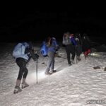 Drugi dzień rozpoczął się bardzo wcześnie, pobudka już o 3:50, szybkie przygotowania, śniadanie o 4:30 i wyjście na szlak o 5:00 z czołówkami. W tym dniu trasa liczyła około 5 km, natomiast ze względu na duże nachylenie, przypominające najbardziej stromy odcinek na Rysy od polskiej strony, podejście wymagało ogromnej wytrzymałości. W surowych zimowych warunkach, miejscami przy śniegu sięgającym do pasa, podejście było wyjątkowo trudne.