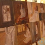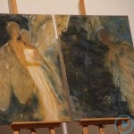 Subtelnie zarysowane, ulotnie zaznaczone i zwiewnie prezentowane sylwetki kobiet. Niezbyt wyraźne – jakby dopiero miały nadejść, a może właśnie dokądś odchodziły. Ubrane na sposób teatralny – jakby czekały na chwilę życiowego występu lub właśnie kończyły popis. Oplecione kolorami i szarościami światłami i cieniami. Niepowtarzalne i równocześnie – jakby bliźniaczo podobne.